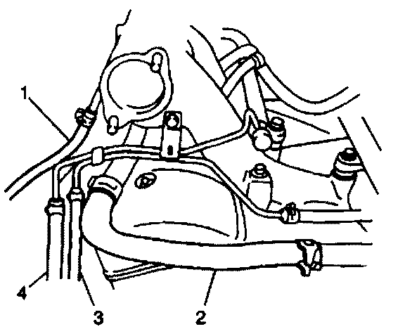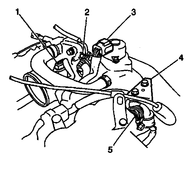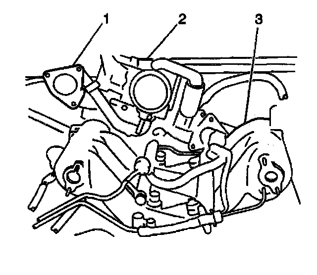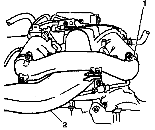 19. Disconnect the hose (2) from the idle air control (IAC) valve.