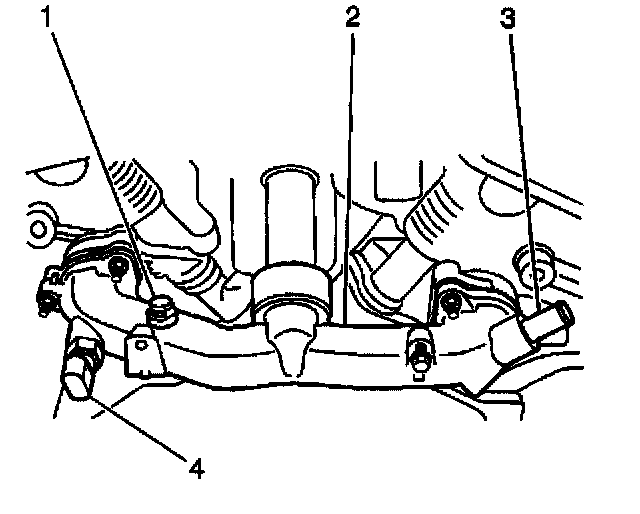 1. Install 4 nuts and 2 bolts from the water crossover (2).