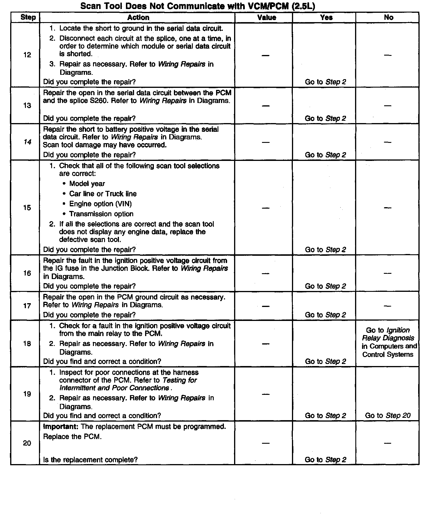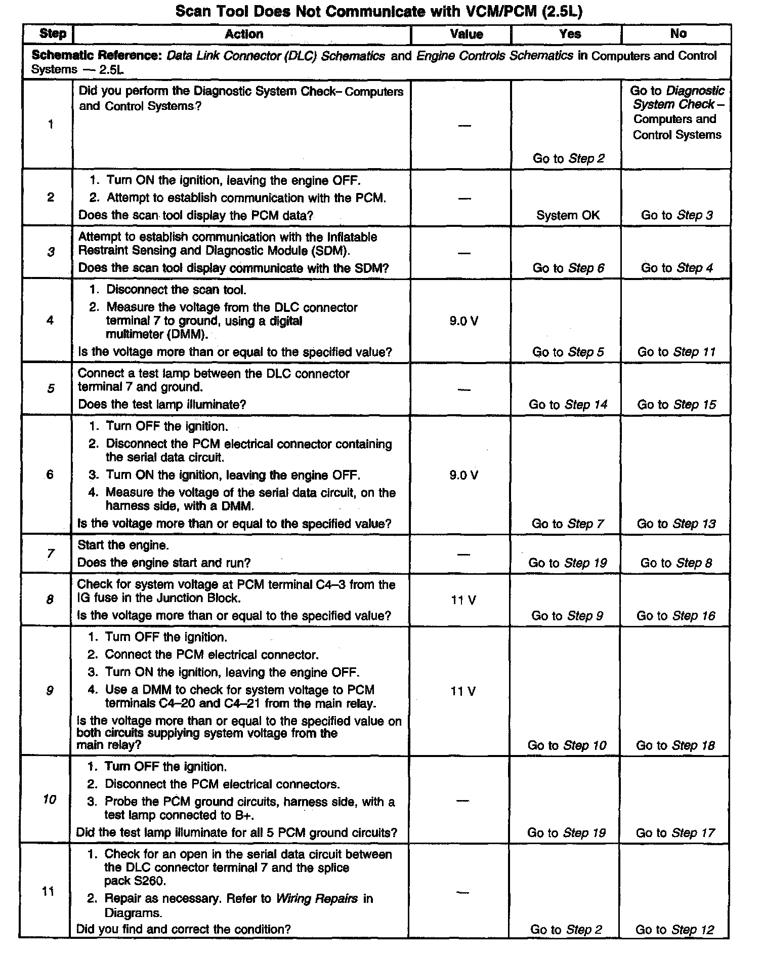 9. This step checks whether the PCM is receiving ignition positive voltage from the main relay when the ignition is ON. The PCM can not provide serial data without ignition positive voltage from the main relay.