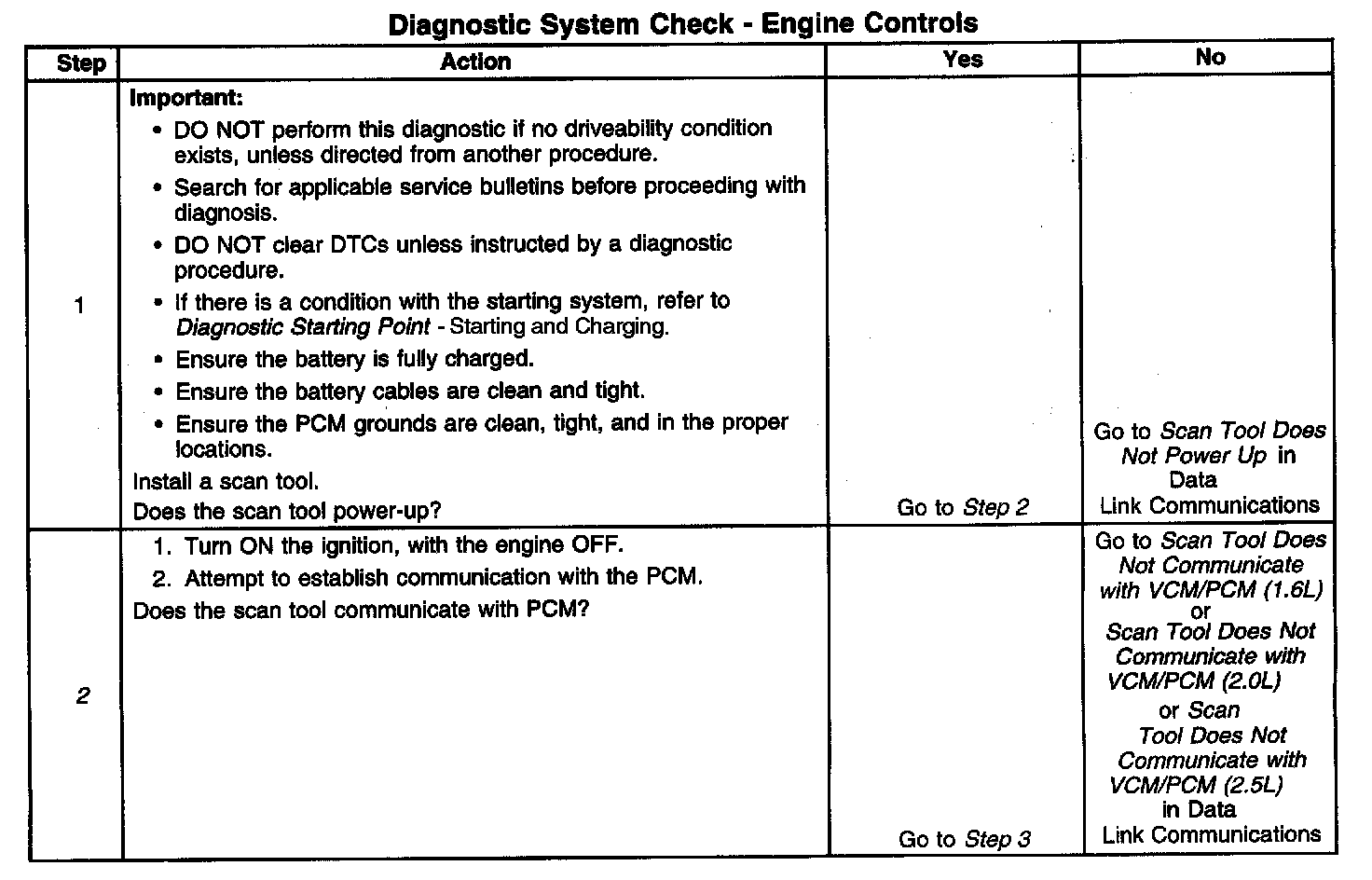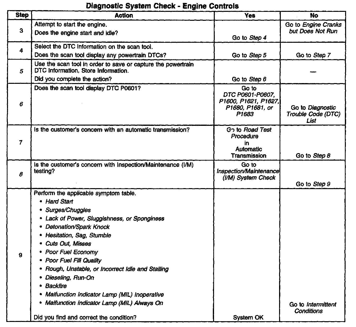DESCRIPTIONThe Diagnostic System Check-Computers and Controls Systems is an organized approach to identifying a condition that is created by a malfunction in the powertrain control system. The Diagnostic System Check must be the starting point for any driveability concern. The Diagnostic System Check directs the service technician to the next logical step in order to diagnose the concern. Understanding and correctly using the diagnostic table reduces diagnostic time, and prevents the replacement of good parts.