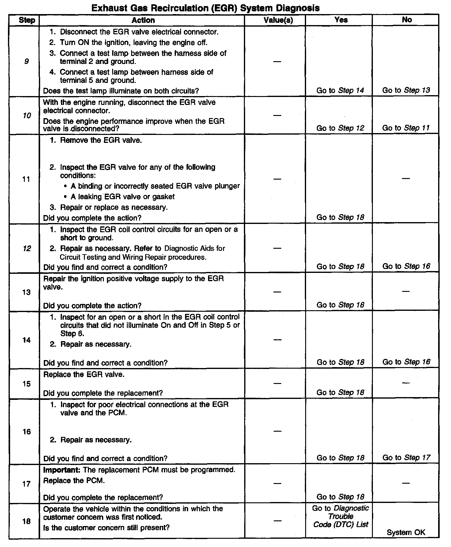 12. This step checks for an EGR valve control circuit that is shorted to ground. If the circuit wiring is OK, a faulty PCM with an internally shorted circuit can cause the EGR valve to be open.