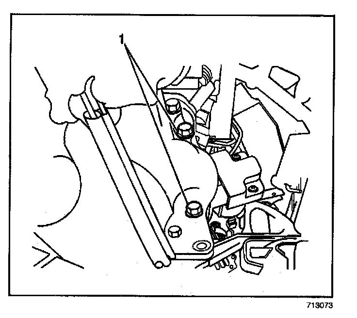 1. Install the starting motor through the front area of the engine compartment between the generator and the inner fender.