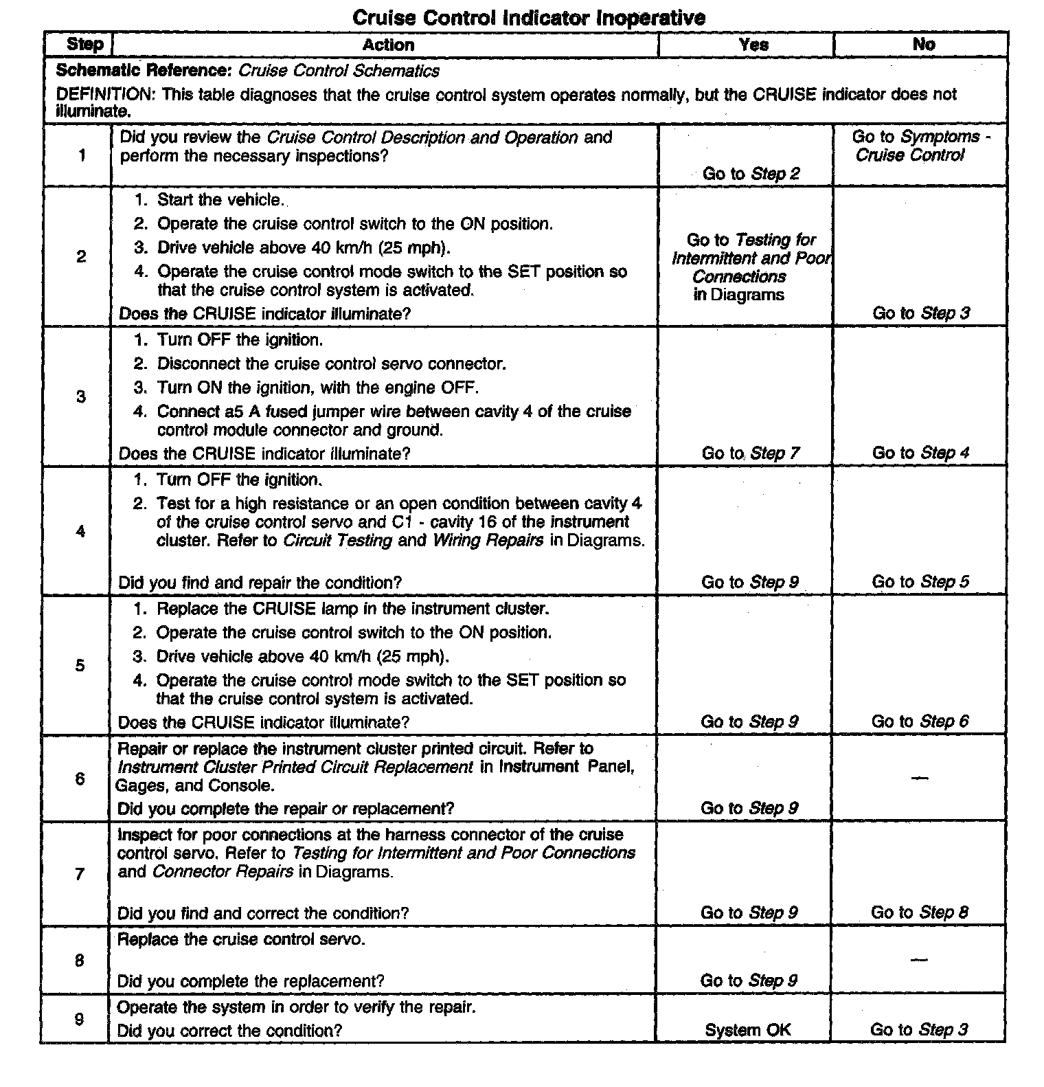 Cruise Control - Indicator Inoperative
