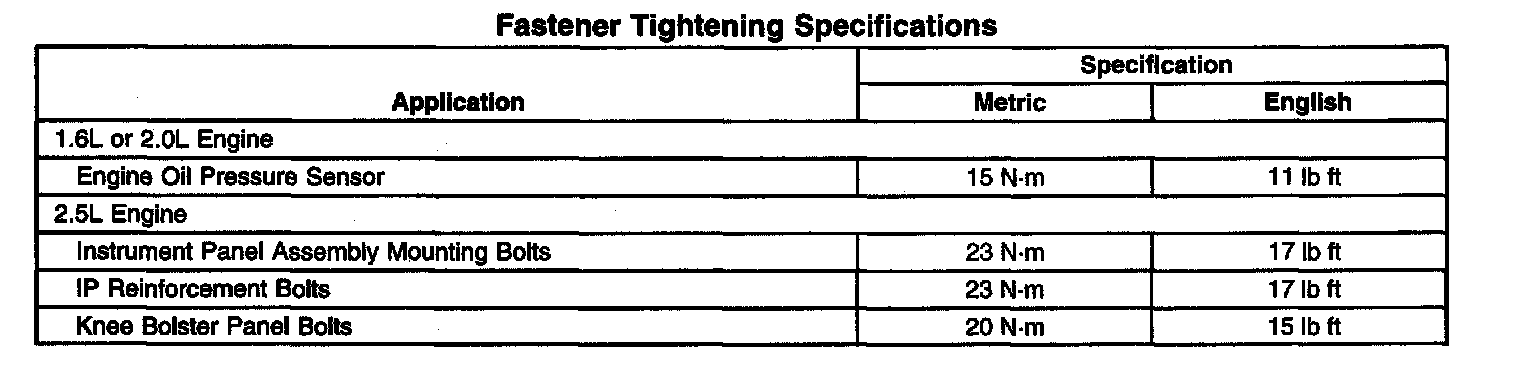 Fastener Tightening Specifications: