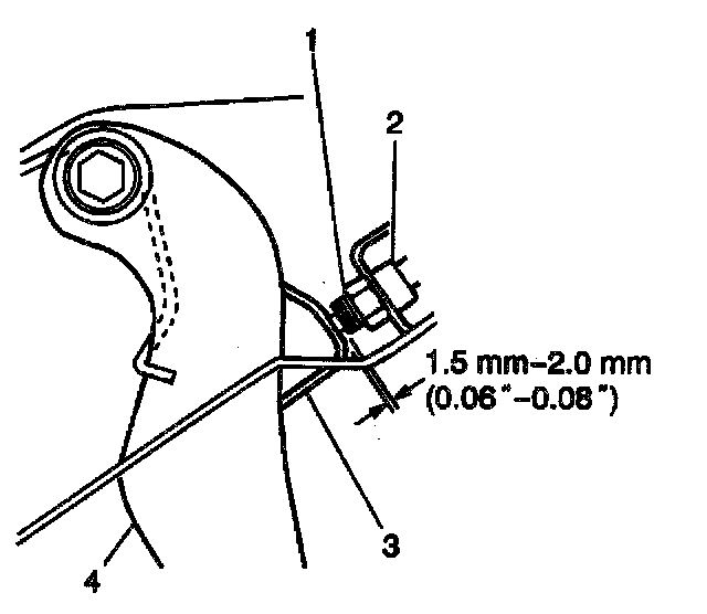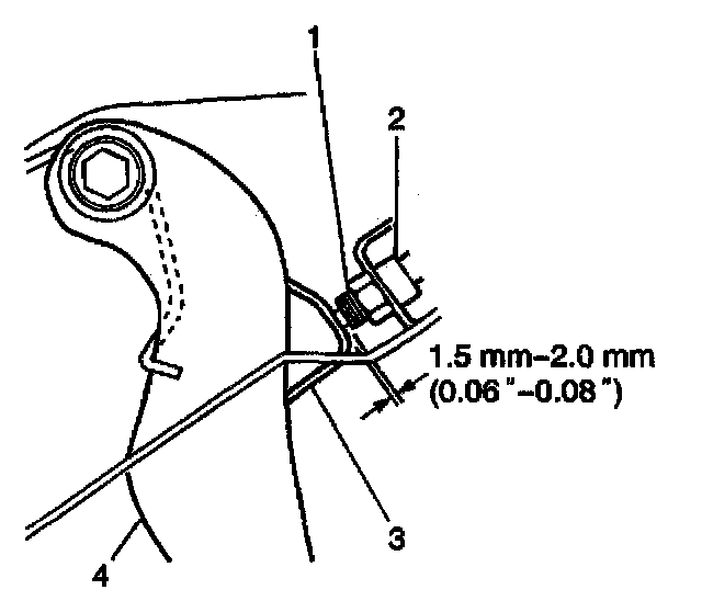 1. Install the stop lamp switch (2) to the bracket. Secure with the nut (1).