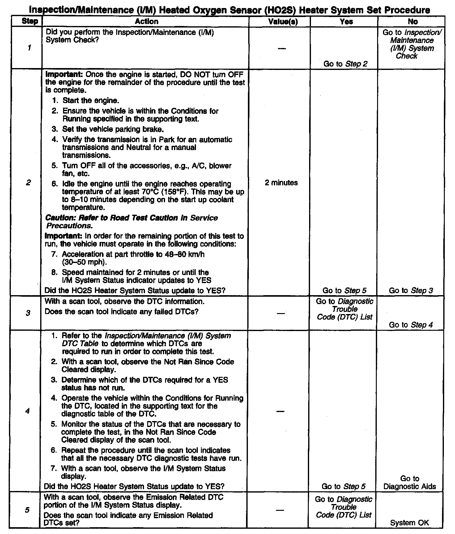 5. The I/M System Status only reports on whether or not a diagnostic has run, not the outcome of the test. If any emission related DTC sets after the tests are complete, the DTC will require diagnosis.