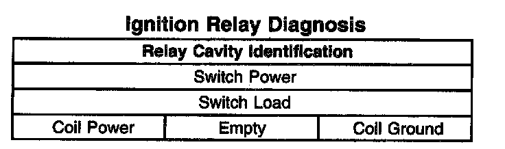 Use the relay cavity table in order to locate the correct cavities to probe during diagnosis. The table layout corresponds to the cavity layout of the relay block.