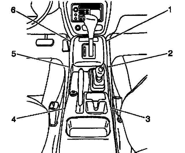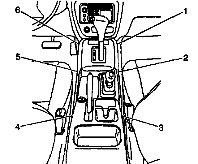 12. Secure the console box with 2 plastic retaining clips (2, 5) and 4 screws (1, 6, 3, 4).