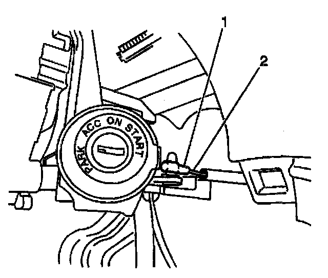 4. Remove the bracket retaining screw (2) from the ignition switch.
