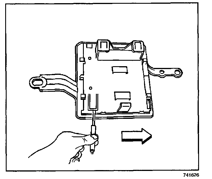 3. Using a flat bladed tool, release the retaining tab on the upper bracket.