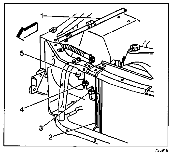 4. Remove the compressor discharge hose (2) from the condenser (4).