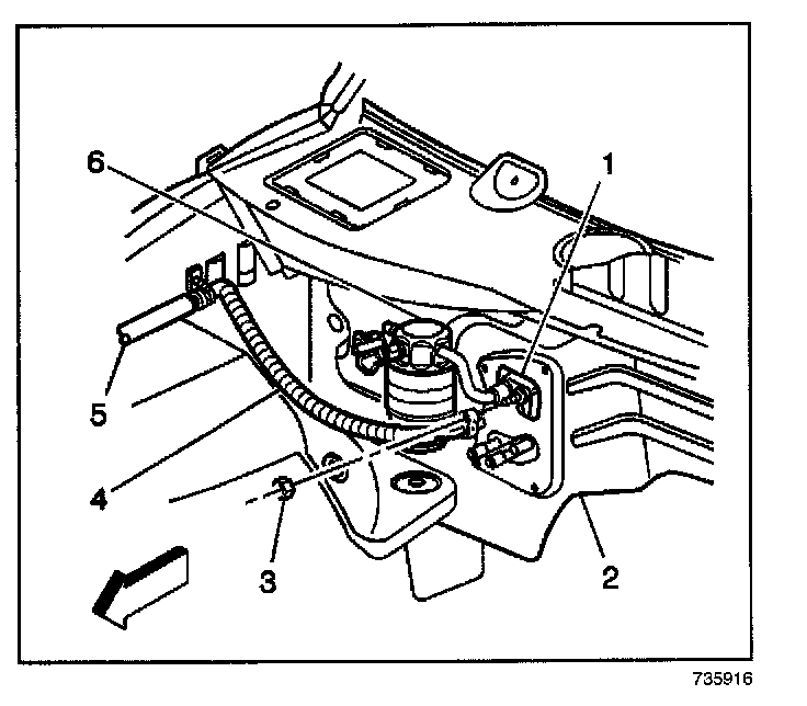 6. Remove the retaining nut (3) from the accumulator (6) at the evaporator (1).