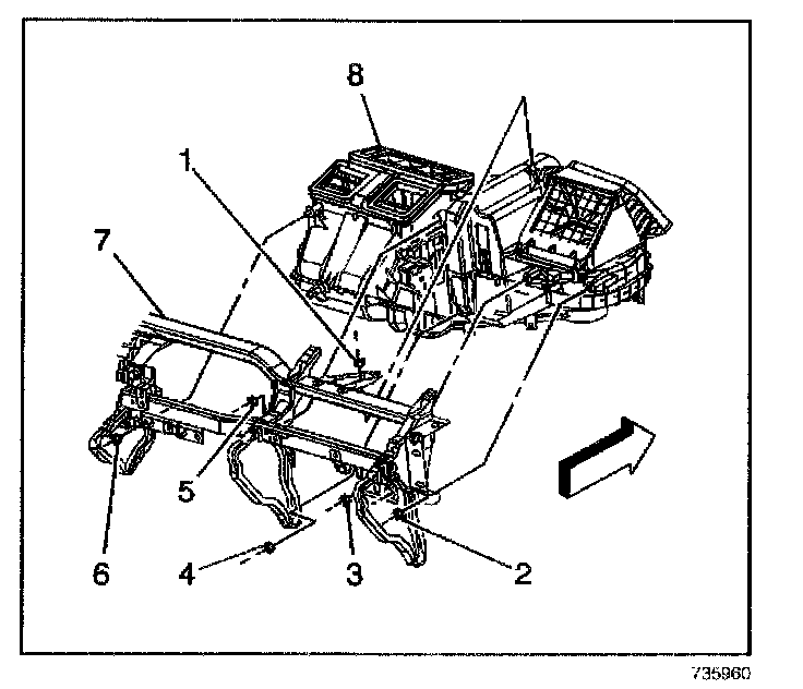 1. If replacing the HVAC module assembly (8), transfer the components from the old HVAC module assembly as necessary.
