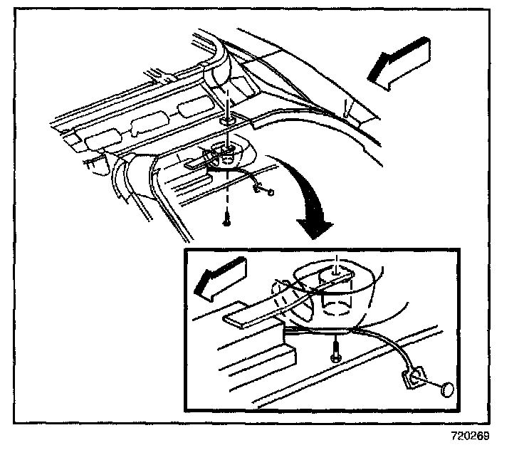 1. Attach the radio antenna module to the headliner retaining strips.