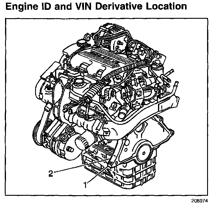 The eighth digit of the Vehicle Identification Number (VIN) identifies the engine. The adhesive-backed labels attached to the engine, laser etching or stampings on the engine block indicate the engine unit number/date code. All engines are stamped with a VIN derivative.