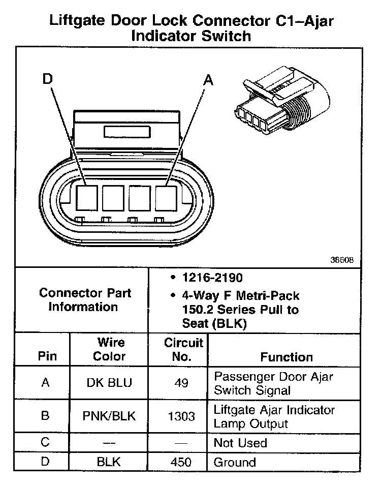 Liftgate Door Lock Connector C1-Ajar Indicator Switch: