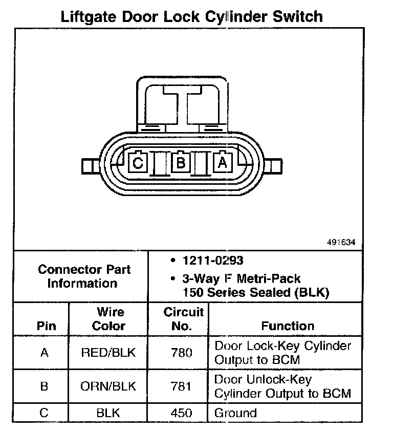 Liftgate Door Lock Cylinder Switch: