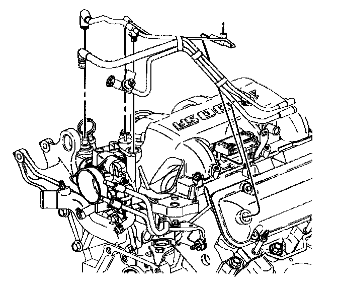 6. Disconnect the engine left side spark plug wire harness attachment clip. Disconnect the throttle body heater hoses.