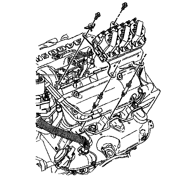 18. Remove the upper intake manifold studs and bolts.