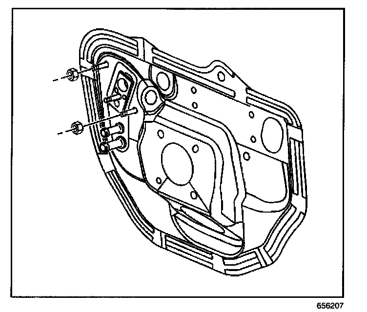 14. Remove the HVAC module to dash panel sound barrier nuts.