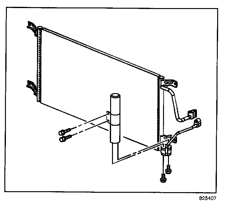 4. Remove the receiver dehydrator lower mounting bolts.