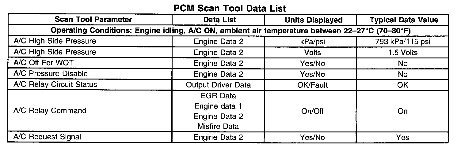 Scan Tool Data List - Powertrain Control Module (PCM)