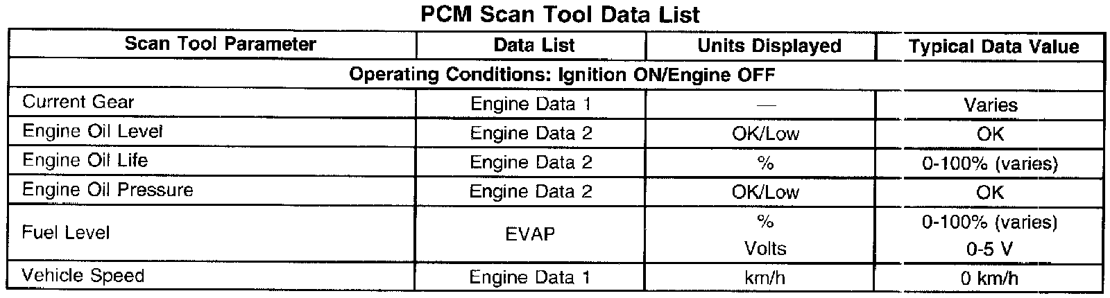 Scan Tool Data List - Powertrain Control Module (PCM)