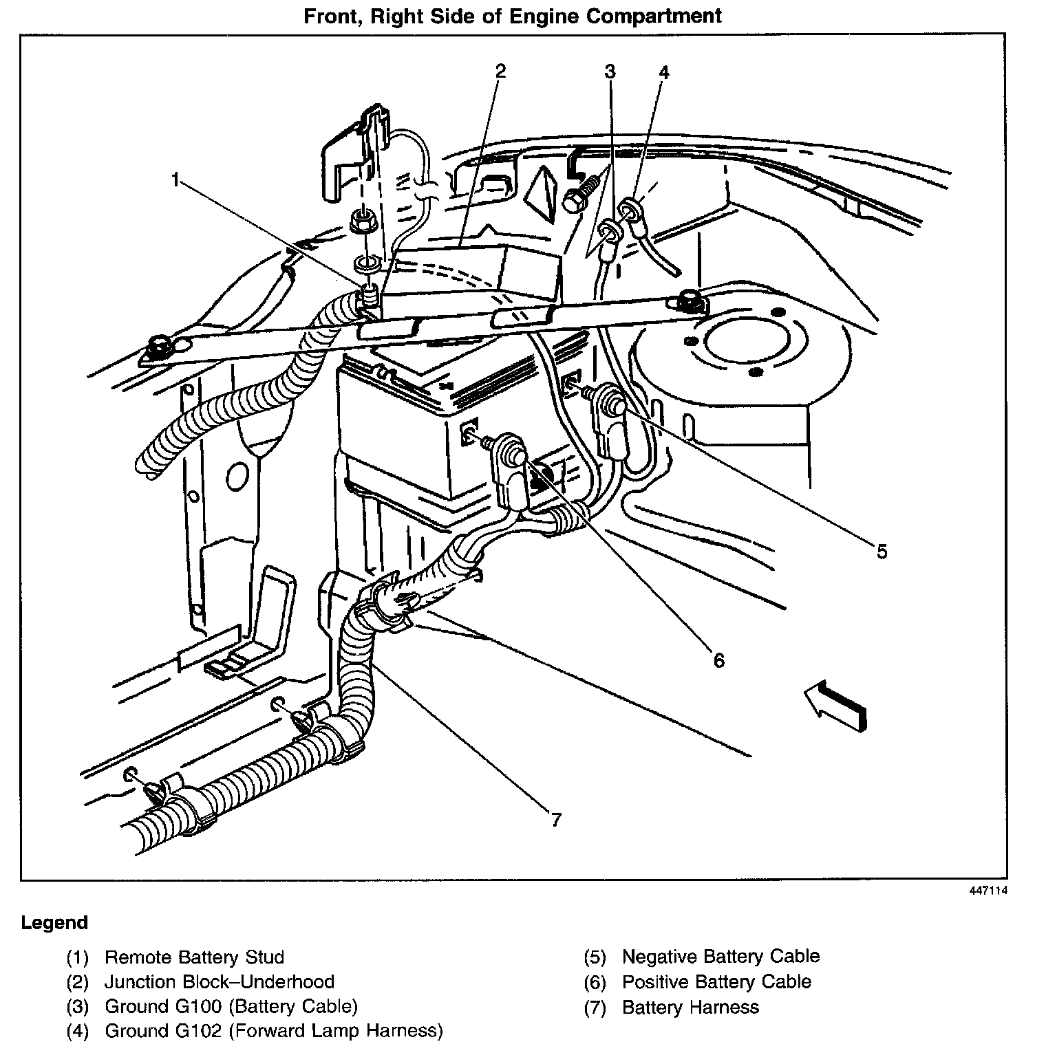 Front, Right Side of Engine Compartment