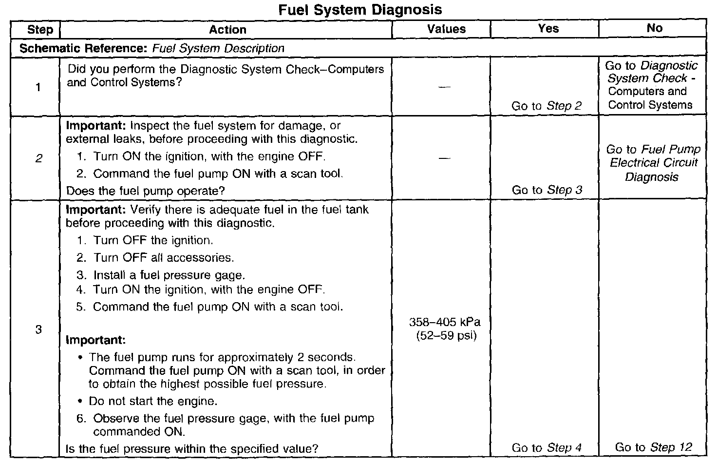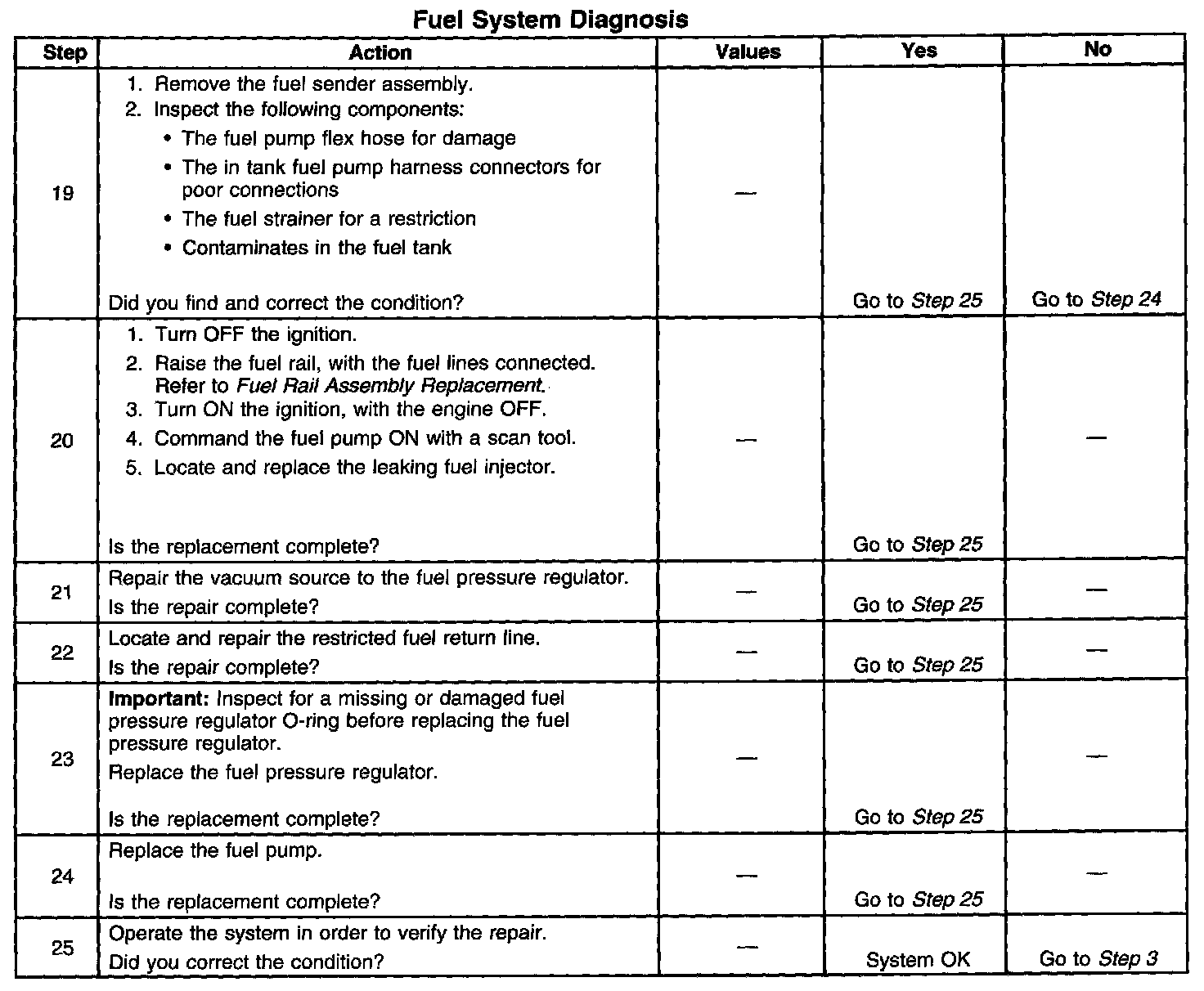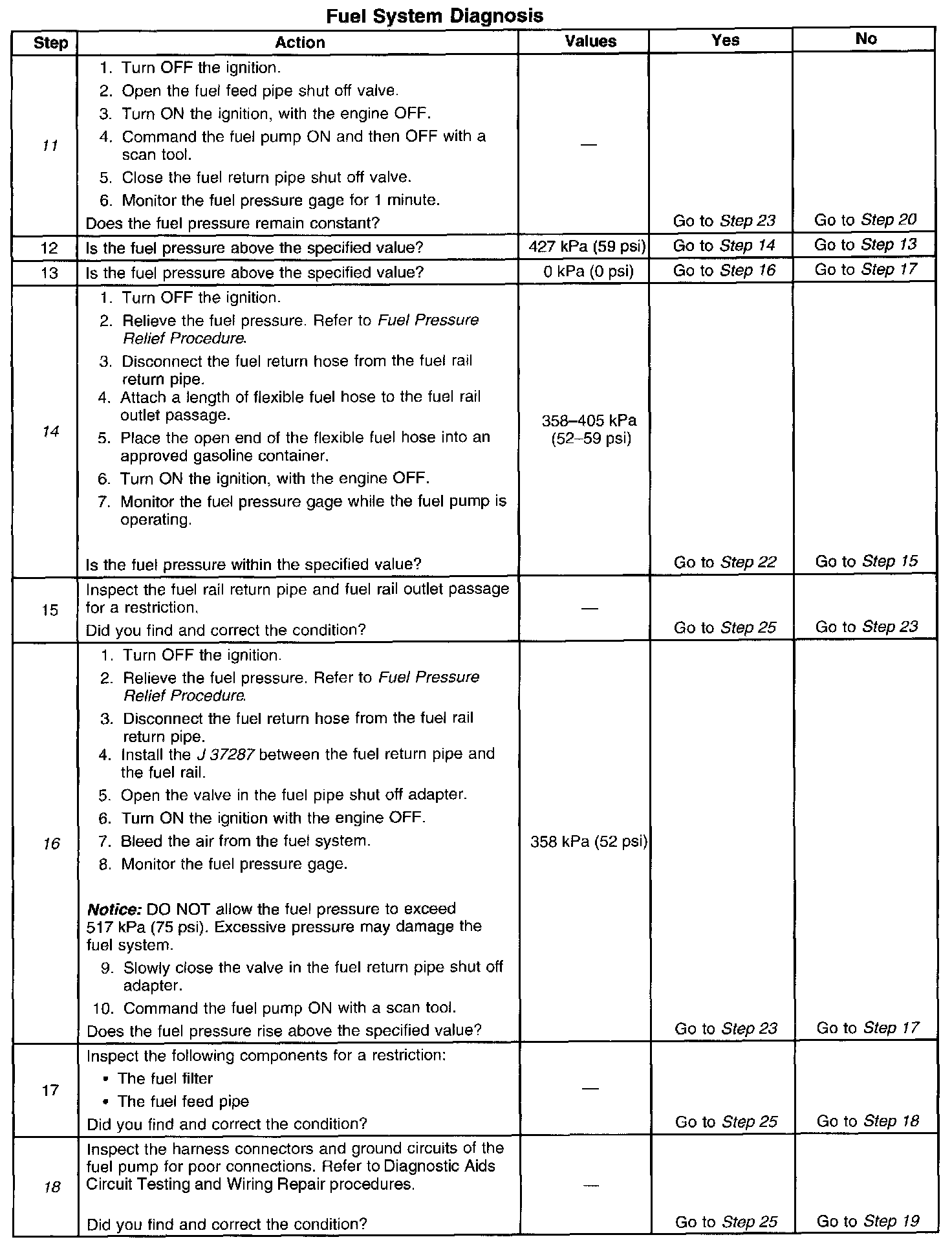 18. This step verifies that a circuit condition is not the cause of a fuel pressure concern. Inspect all fuel pump electrical circuits thoroughly.