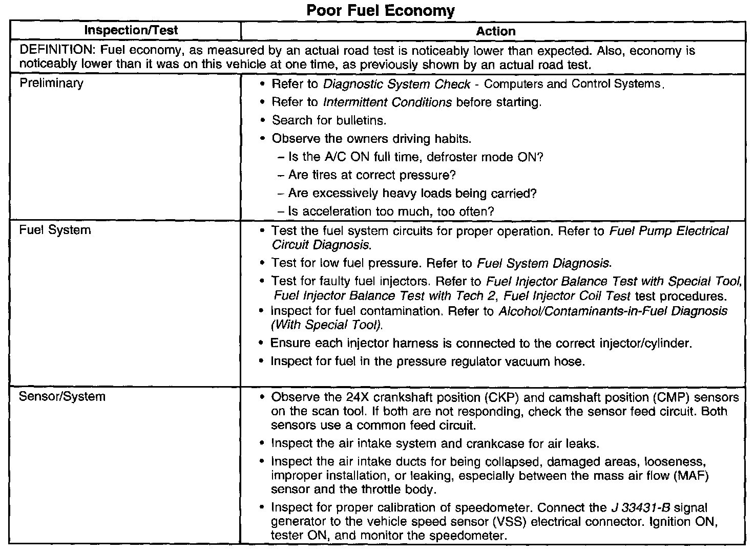 Poor Fuel Economy