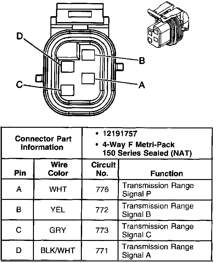 Transmission Range Switch C2 Connector, Wiring Harness Side