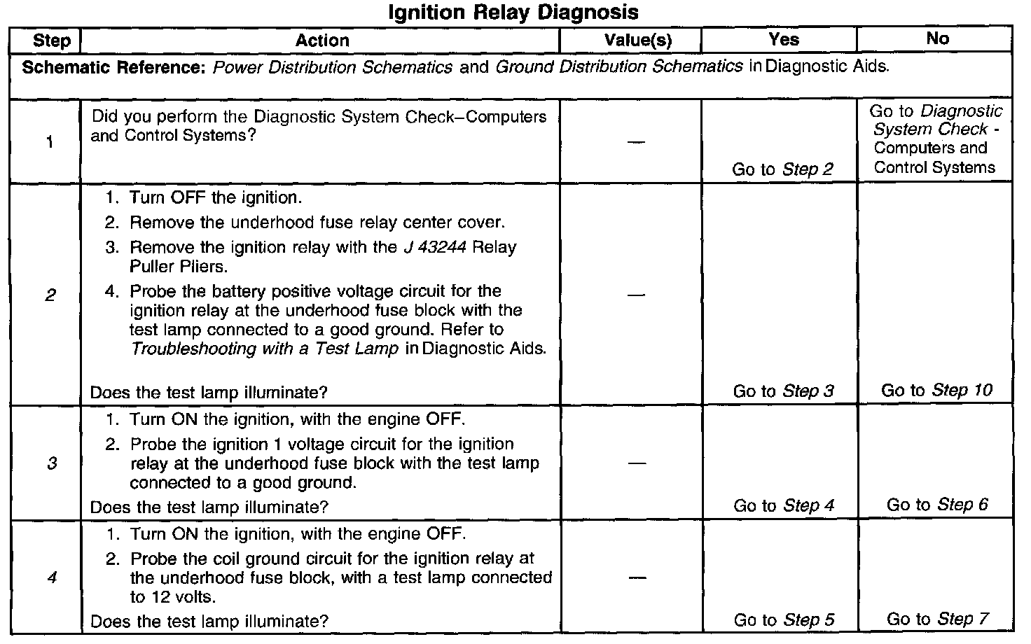 5. This step isolates the circuit from the ignition relay. All of the circuits at the relay are good if the test lamp illuminates.
