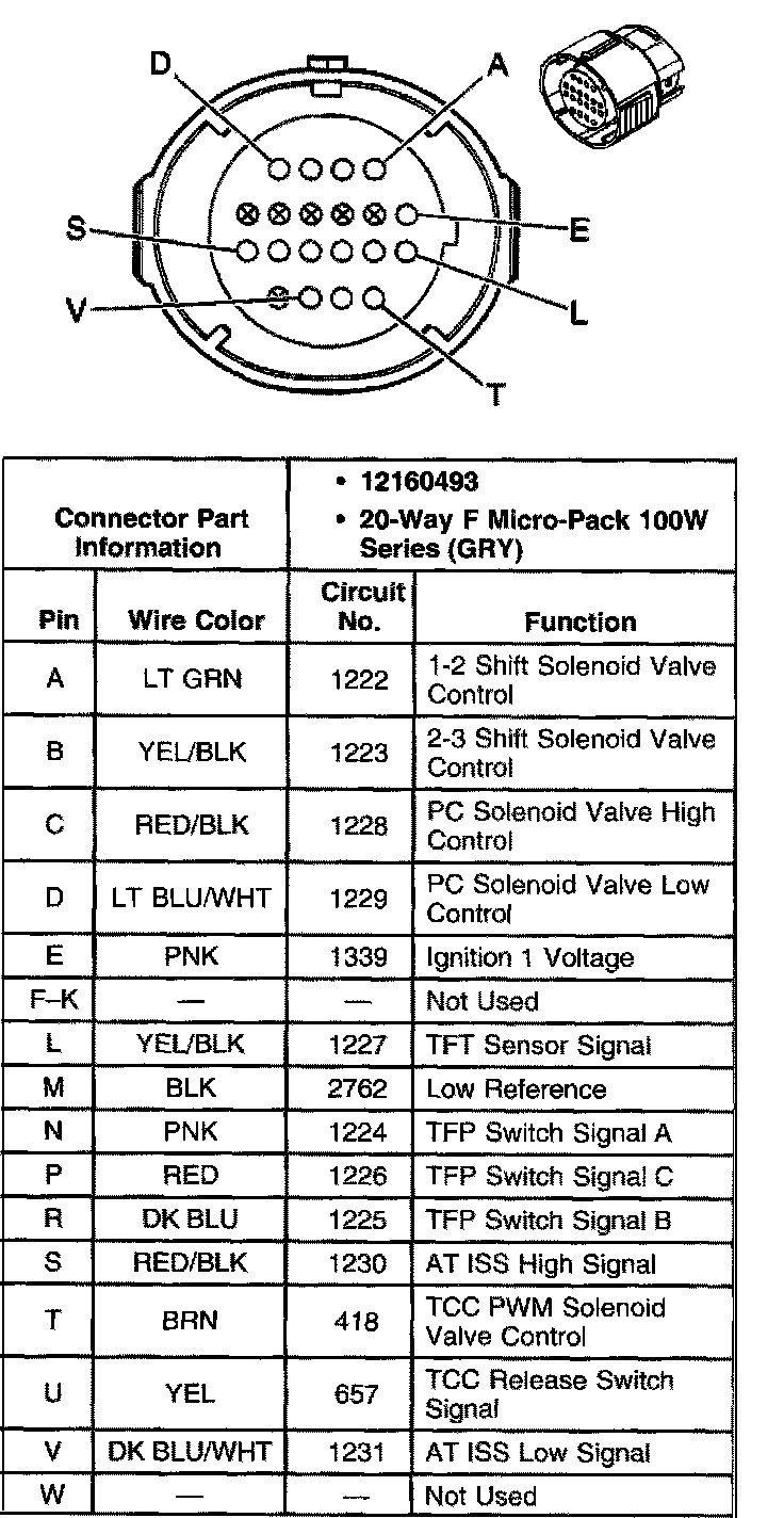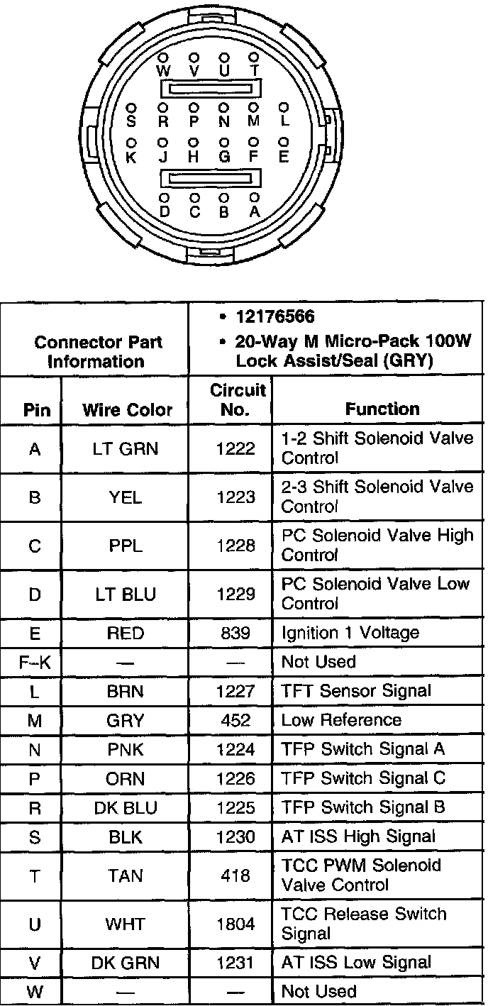 A/T Inline Harness 20-Way Connector, Transmission Side: