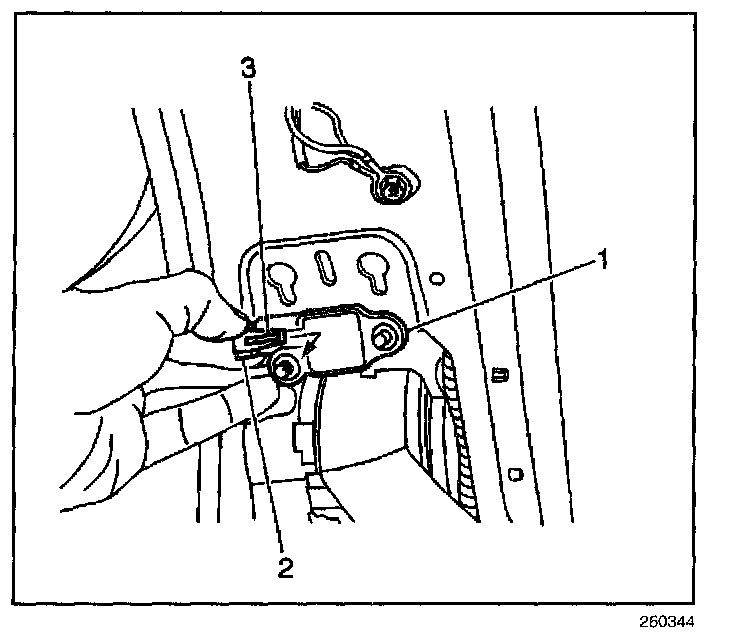 3. Install the inflatable restraint side impact sensor (1) to the center pillar.