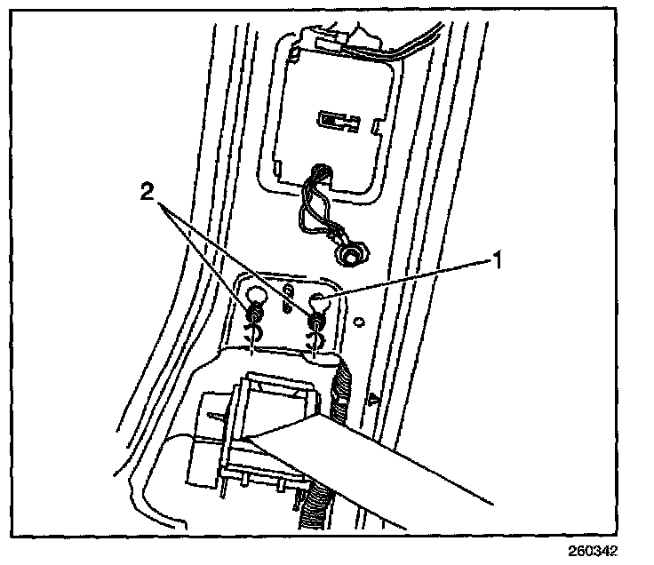 3. Loosen the inflatable restraint side impact sensor fasteners (2).