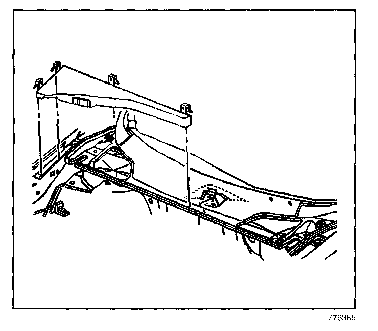 1. Position the wiper drive system module cover to the pinchweld flange.