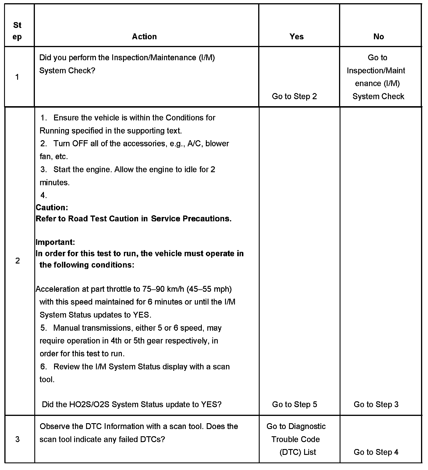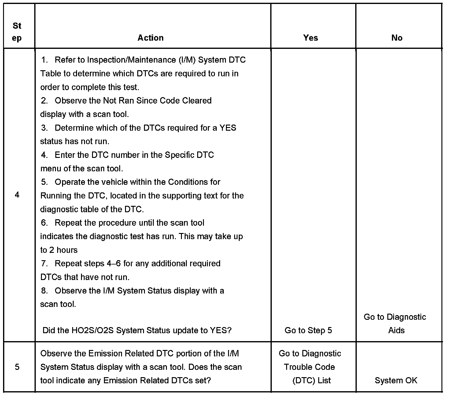 The I/M System Status Display on the scan tool provides an indication of whether the control module has completed the required tests. The I/M System Status does not indicate that the tests have passed or failed. When all of the diagnostics for a specific system have run and passed the I/M System Status will update to YES, indicating a determination was made, even if all of the other tests for that system have not run.