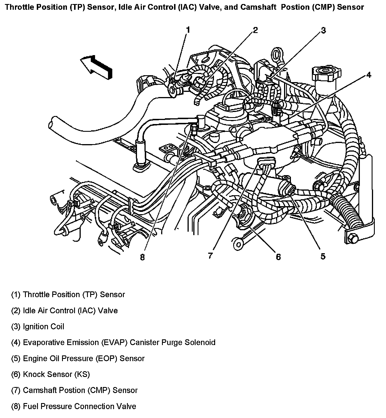 Throttle Position (TP) Sensor, Idle Air Control (IAC) Valve, And Camshaft Postion (CMP) Sensor: