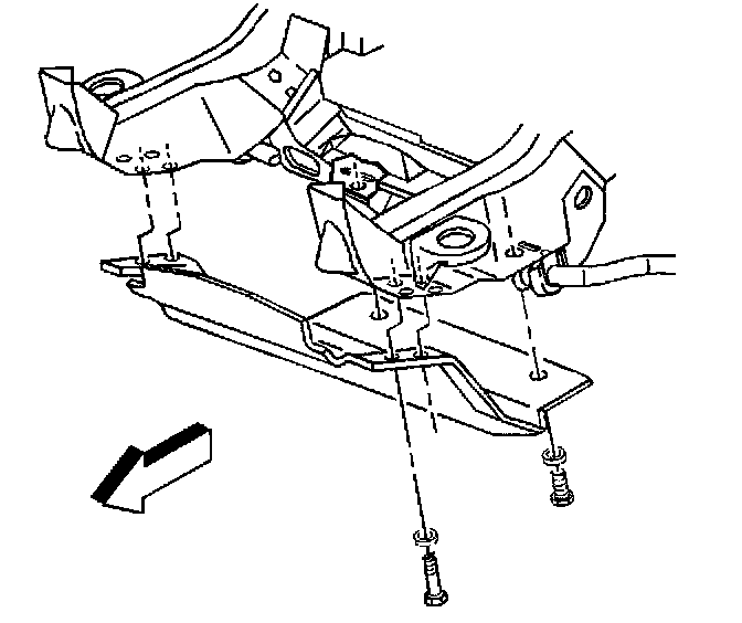 2. If the vehicle is equipped with the underbody shield package, then remove the steering linkage shield mounting bolts.