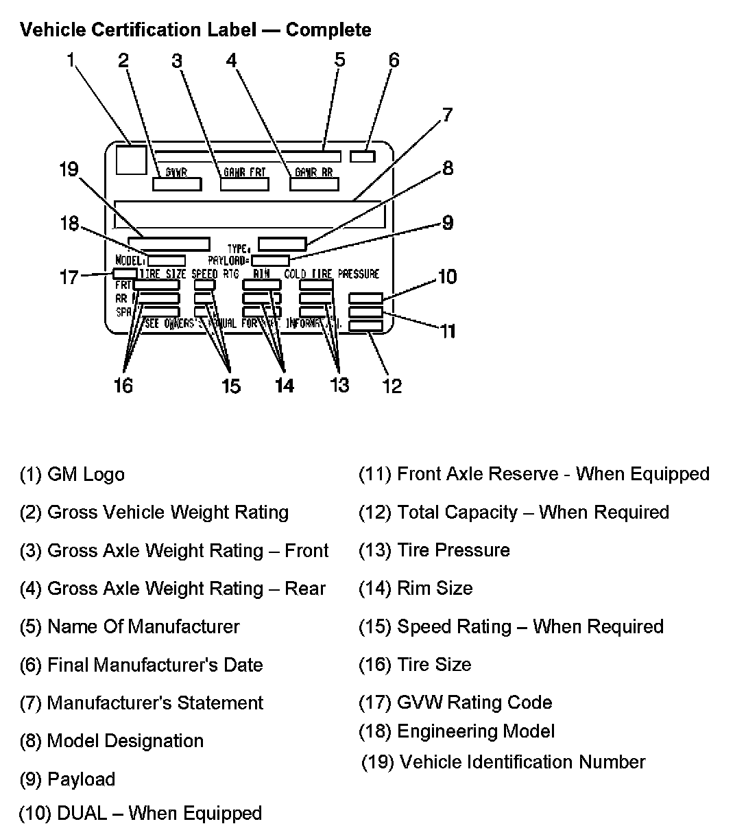 The front gross axle weight rating (GAWR FRT) is the weight exerted on the front axle. The rear gross axle weight rating (GAW RR) is the weight exerted on the rear axle. The front and rear gross axle weights must not exceed the front and rear gross axle weight ratings.