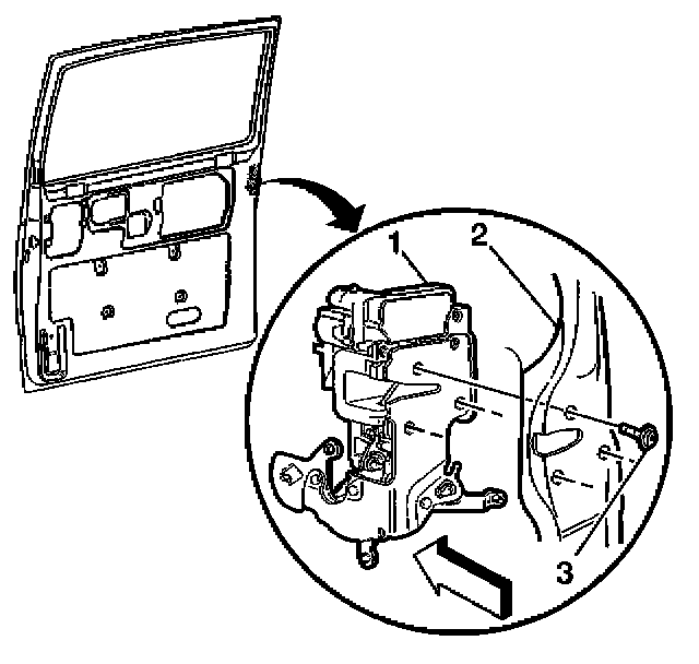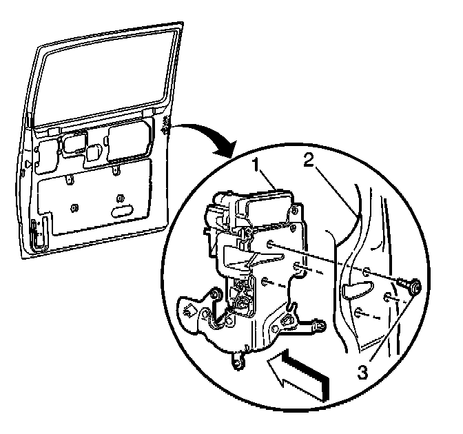 4. Remove the lock rods (1) from the lock assembly (1 and 3).