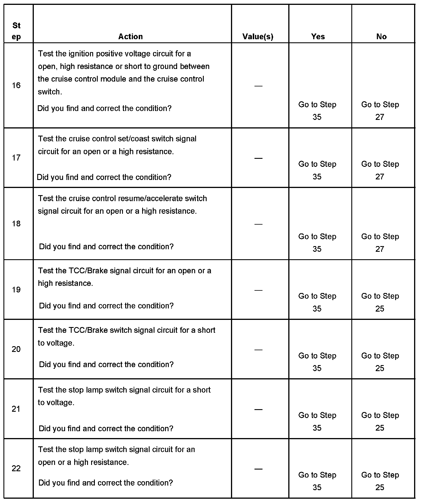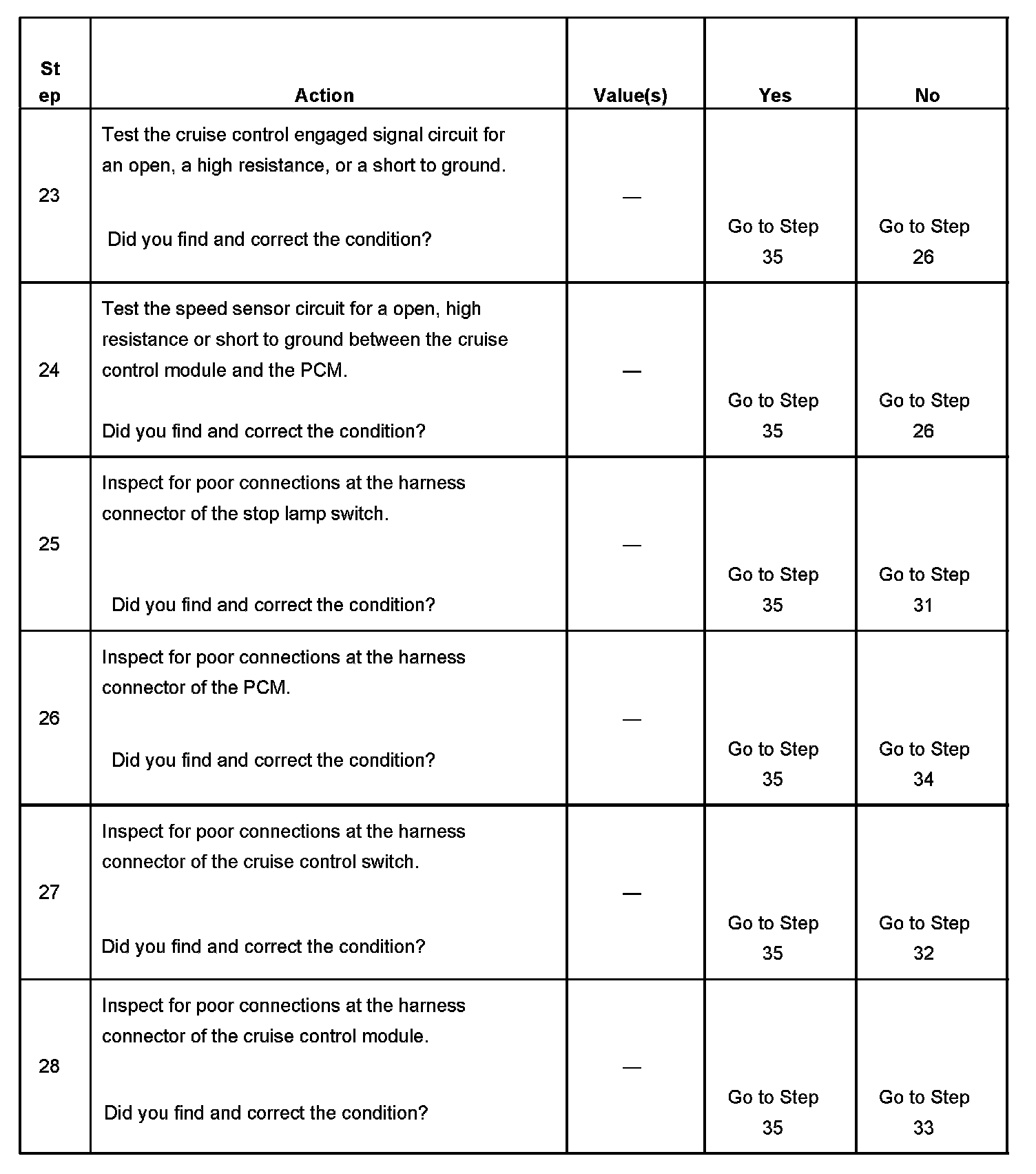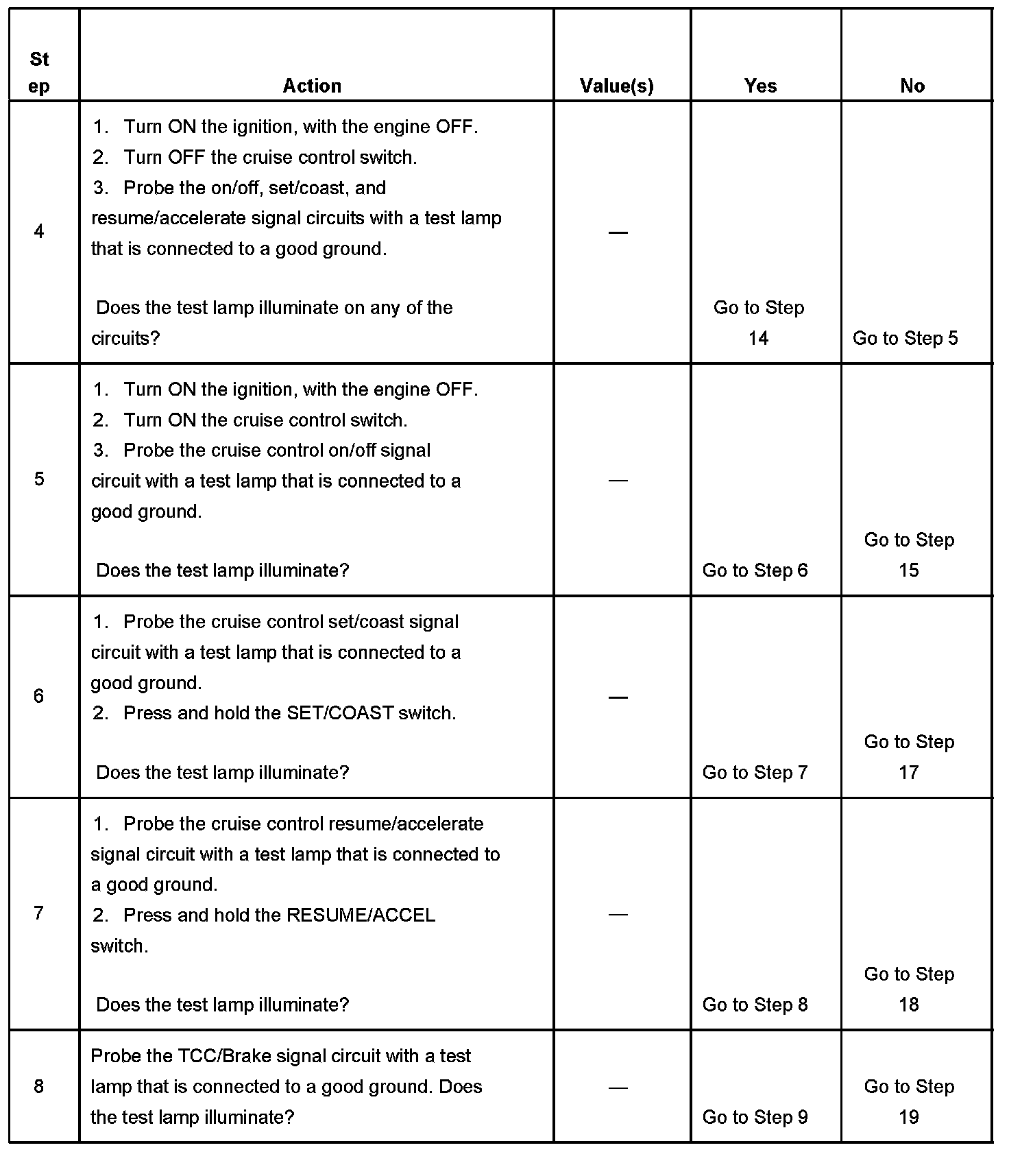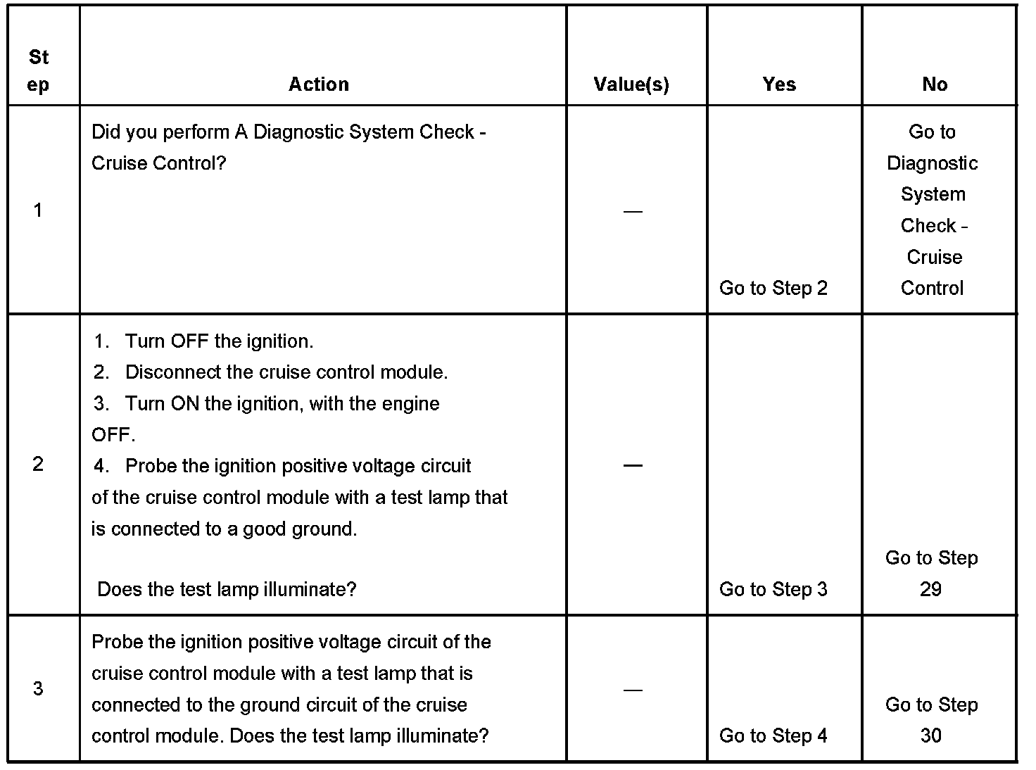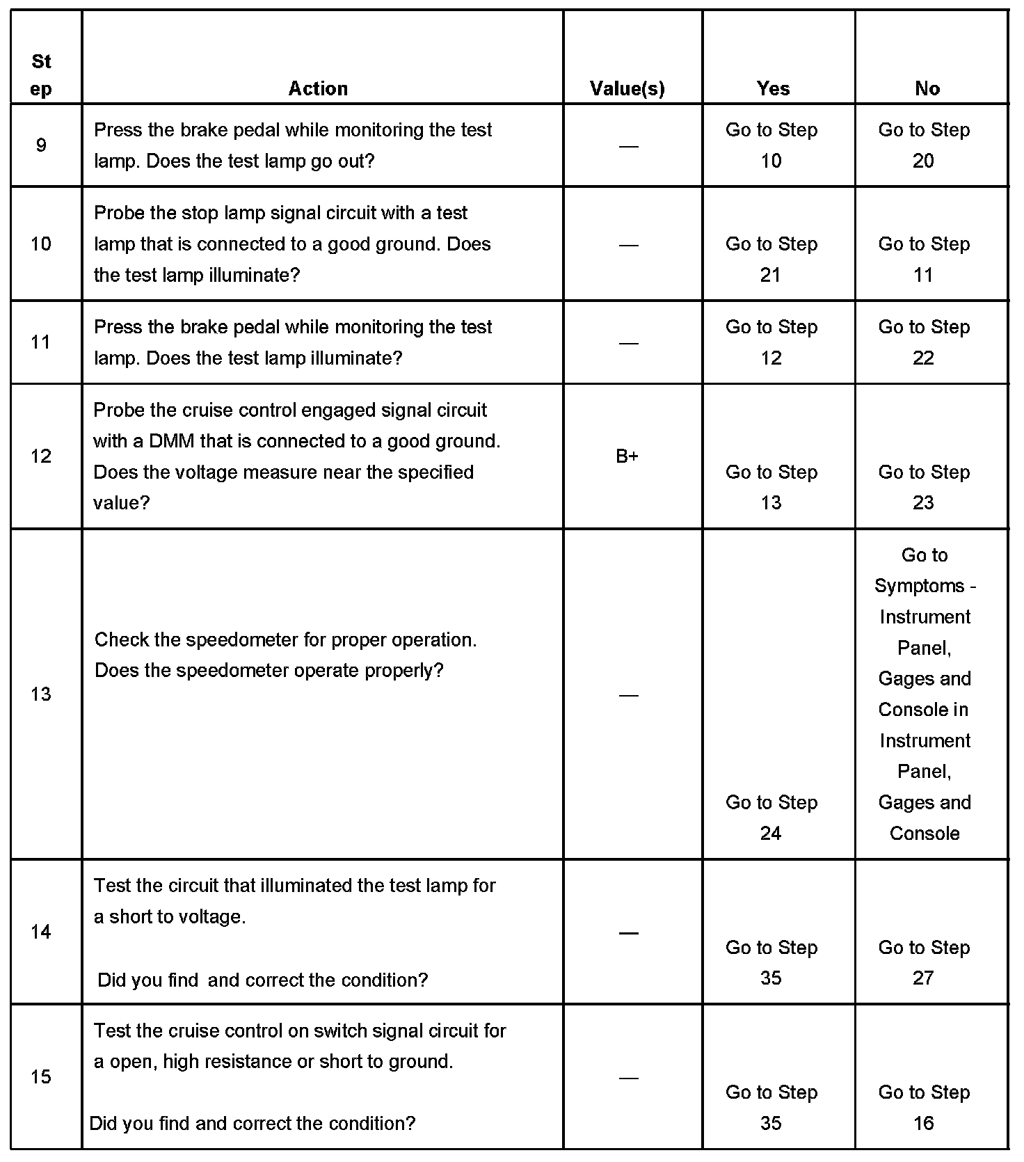 CRUISE CONTROL INOPERATIVE/MALFUNCTIONINGDIAGNOSTIC AIDS