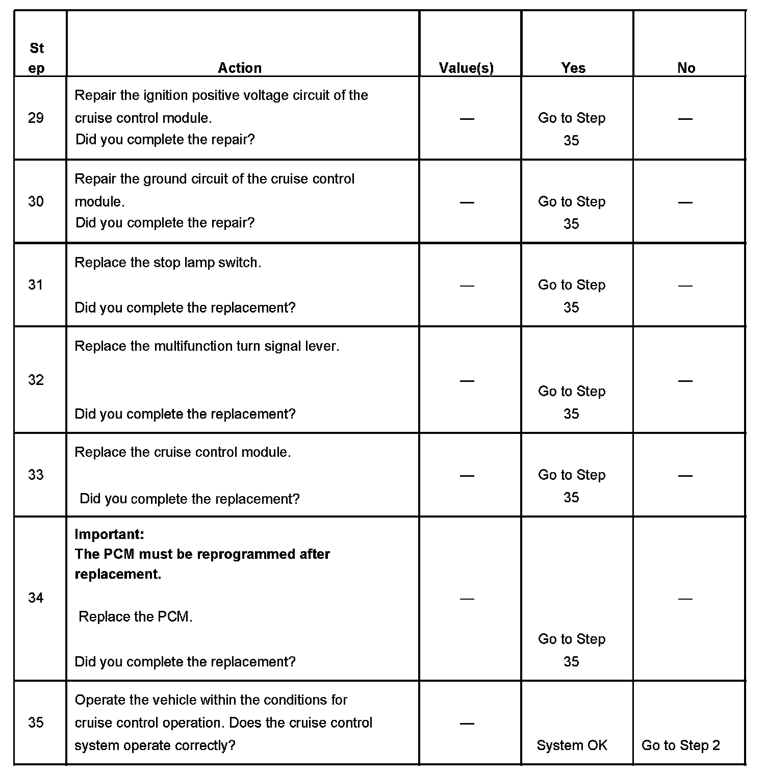 Cruise Control - Inoperative/Malfunctioning