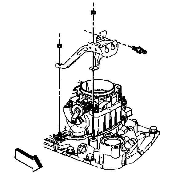 12. Install the accelerator control cable bracket, studs, and nuts to the intake manifold and the throttle body.