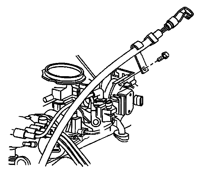 18. Install the engine wiring harness bracket and nut to the intake manifold stud.