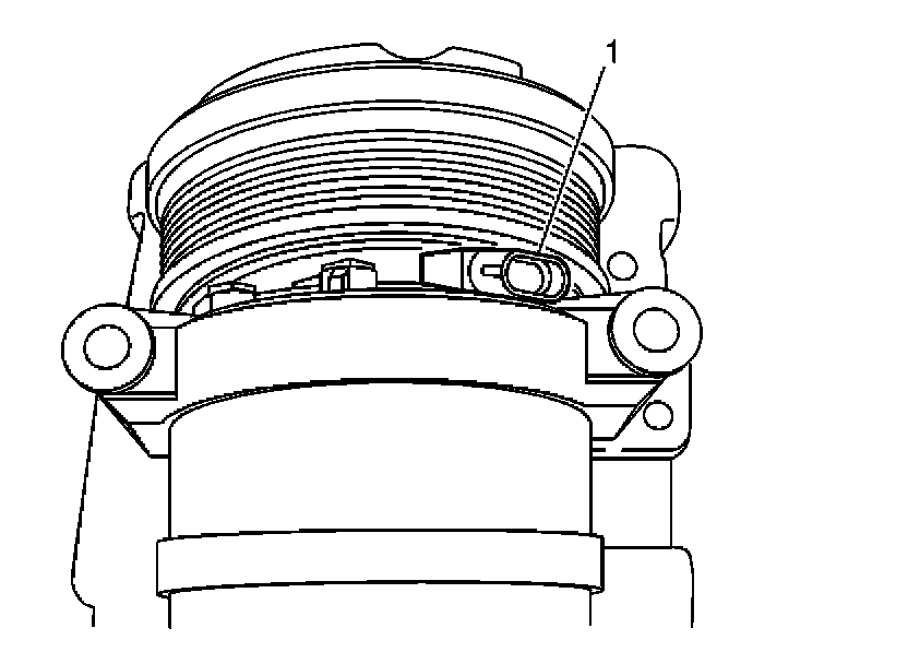 9. Mark the clutch coil terminal location (1) on the compressor front head.
