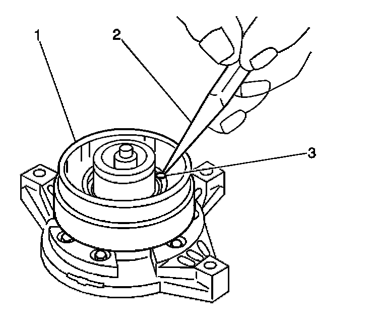11. With the compressor mounted to the J 34992, position the pulley rotor (1) and bearing assembly on the front head.