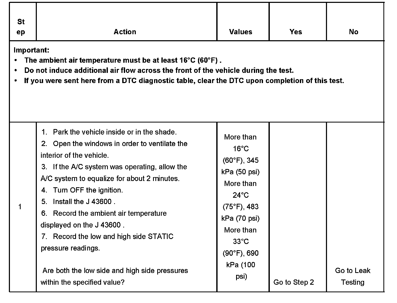 1. This step determines if the A/C system has at least the minimum refrigerant charge required to operate the system without damage.