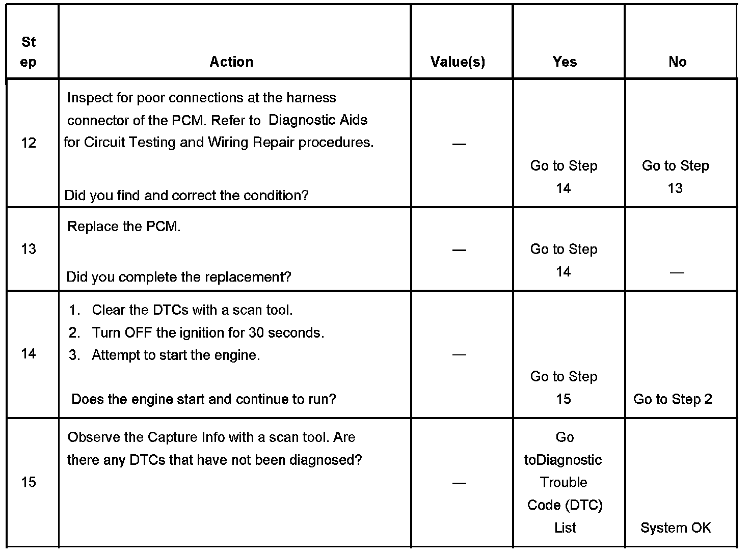 The Engine Cranks but Does Not Run diagnostic table assumes the following: