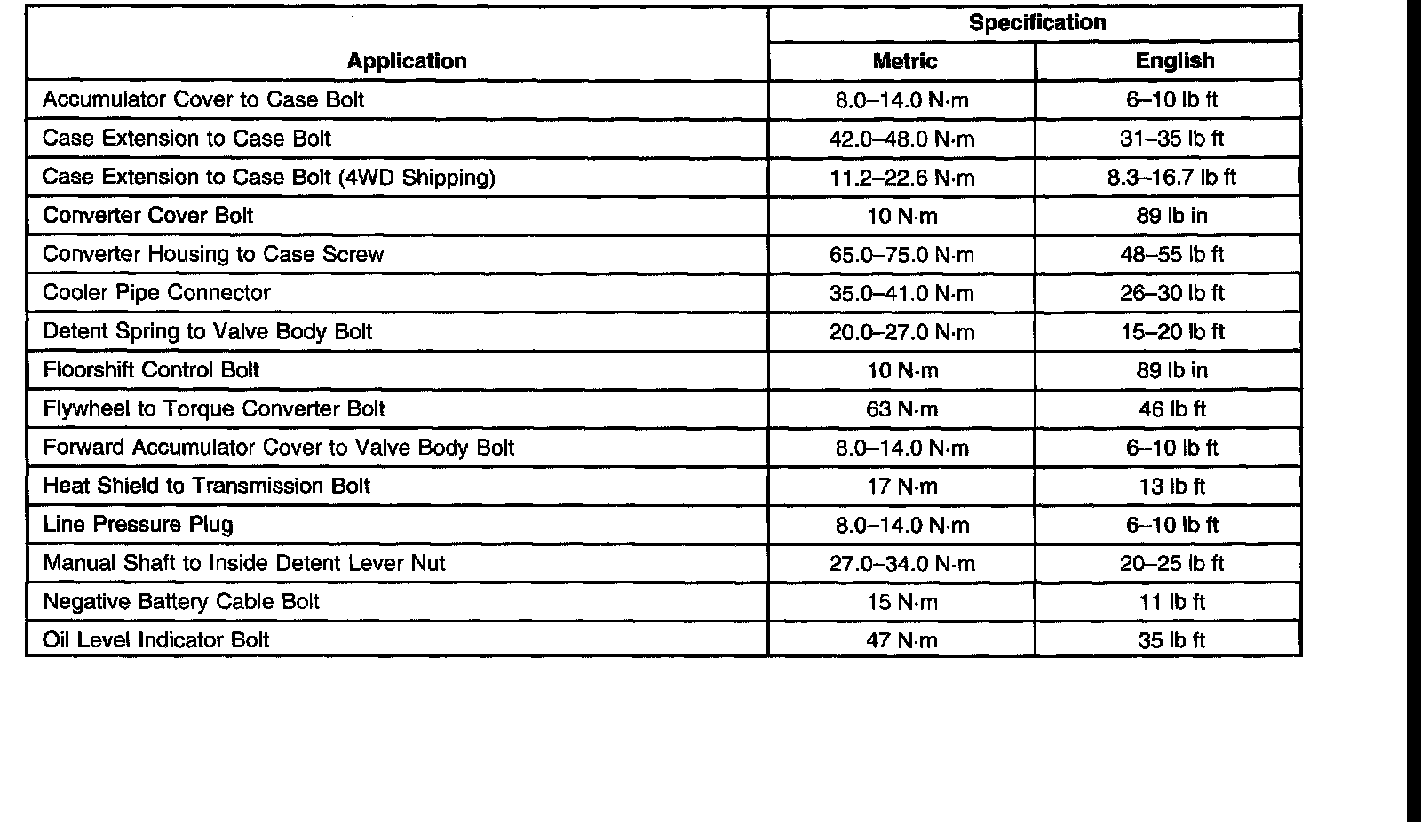 Fastener Tightening Specifications